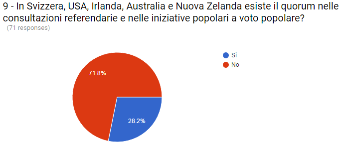 9 – In Svizzera, USA, Irlanda, Australia, Nuova Zelanda e Bielorussia esiste il quorum nelle consultazioni referendarie e nelle iniziative popolari a voto popolare
