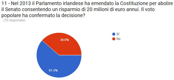 11 – Nel 2013 il Parlamento irlandese ha emendato la Costituzione per abolire il Senato consentendo un risparmio di 20 milioni di euro annui. Il voto popolare ha acconsentito?