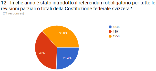 12 – In che anno è stato introdotto il referendum obbligatorio per tutte le revisioni parziali o totali della Costituzione federale svizzera?