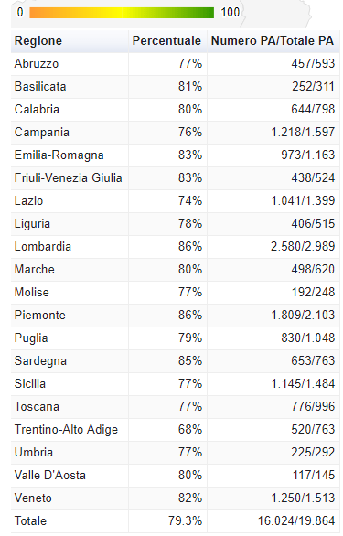 Fonte: Bussola della Trasparenza – classifica stilata dal Ministero per la Semplificazione e la PA