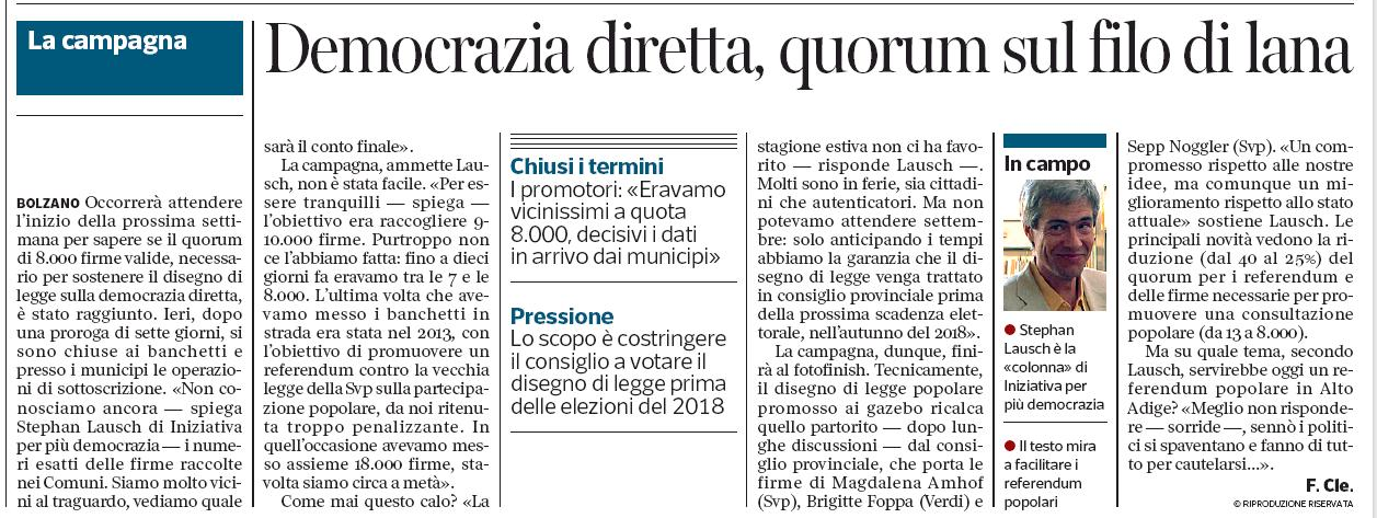 Periodo infausto, ma obbligato: la legislatura terminerà nell’autunno 2018 e per obbligare il Consiglio provinciale a trattare il disegno di legge sulla democrazia diretta entro quel termine era indispensabile avviare immediatamente l’iniziativa popolare.