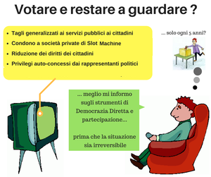 Adattamento di alcuni brani tratti dal libro “Vivere meglio con più democrazia.Guida sulla democrazia diretta per cittadini attivi e consapevoli“, autori: di: Bruno Aprile, Thomas Benedikter, Roberto Brambilla, Paolo Michelotto, Dario Rinco, Pino Strano