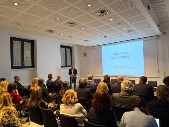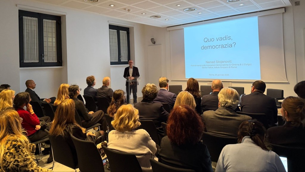 L’apertura dei lavori, affidata a Nenad Stojanović (Professore di scienze politiche, Università di Ginevra e Centro studi sulla democrazia di Aarau – Polo di ricerca sulle innovazioni democratiche PIDEM), ha tracciato un quadro lucido e preoccupante: la democrazia è in arretramento a livello globale. Gli indicatori sono inequivocabili: calo costante della partecipazione elettorale, crisi dei partiti tradizionali e ascesa di populismi spesso apertamente “poco democratici”. A queste fragilità strutturali si aggiunge una nuova minaccia tecnologica: l’Intelligenza Artificiale consente oggi di fabbricare consenso artificiale attraverso “sciami di agenti malevoli”, capaci di infiltrarsi nelle comunità digitali e manipolare le convinzioni dei cittadini su larga scala.