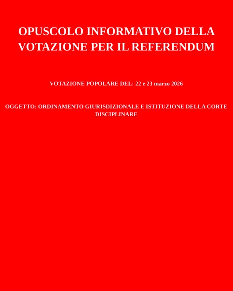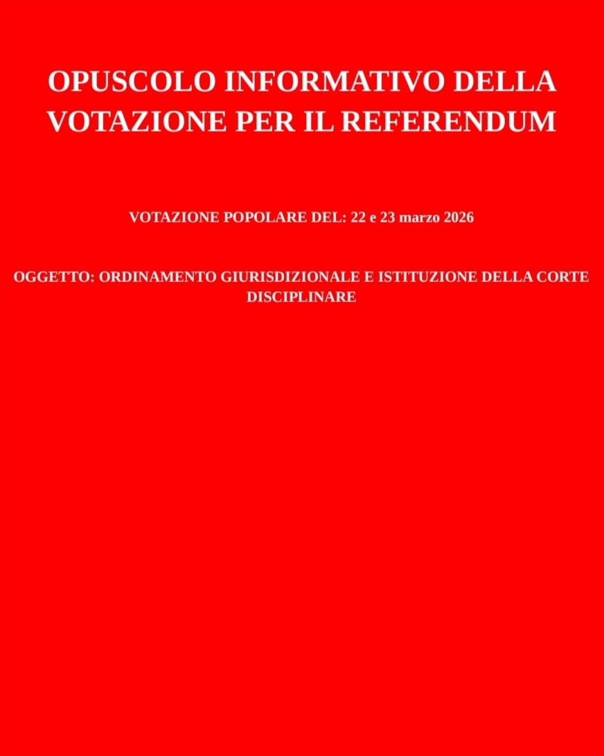 In vista del referendum confermativo costituzionale del 22-23 marzo sulla riforma relativa alla divisione del Consiglio Superiore della Magistratura e all’istituzione dell’Alta Corte disciplinare, pubblichiamo l’opuscolo informativo elaborato da Più Democrazia Italia ispirandosi al modello realizzato dalla Confederazione elvetica in occasione di ogni singola consultazione popolare e che viene inviato a tutti gli aventi diritto di voto congiuntamente alla scheda di voto.