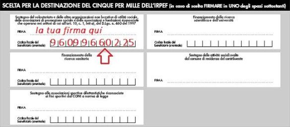 - Inserisci il nostro codice fiscale 96099660225 nel riquadro destinato alle “Associazioni di promozione sociale”