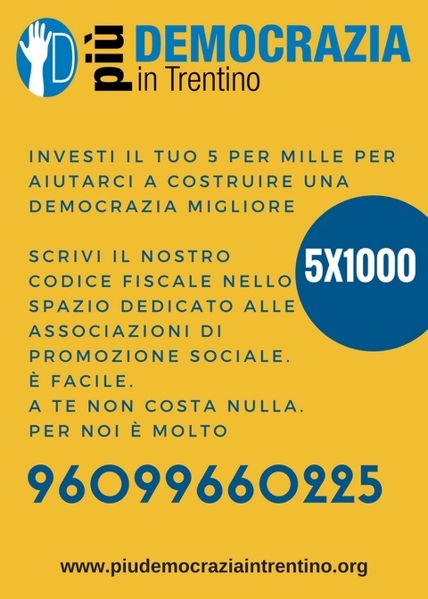 Un piccolo gesto, che non costa nulla, per sostenere le attività di Più Democrazia in Trentino.
