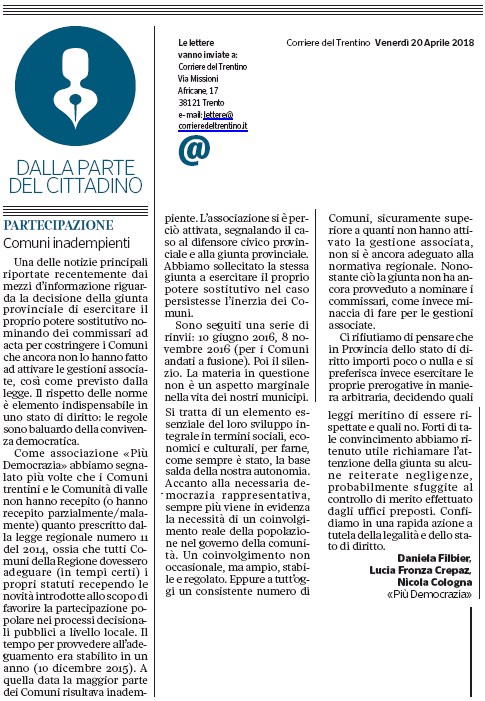 lettere, Corriere del Trentino