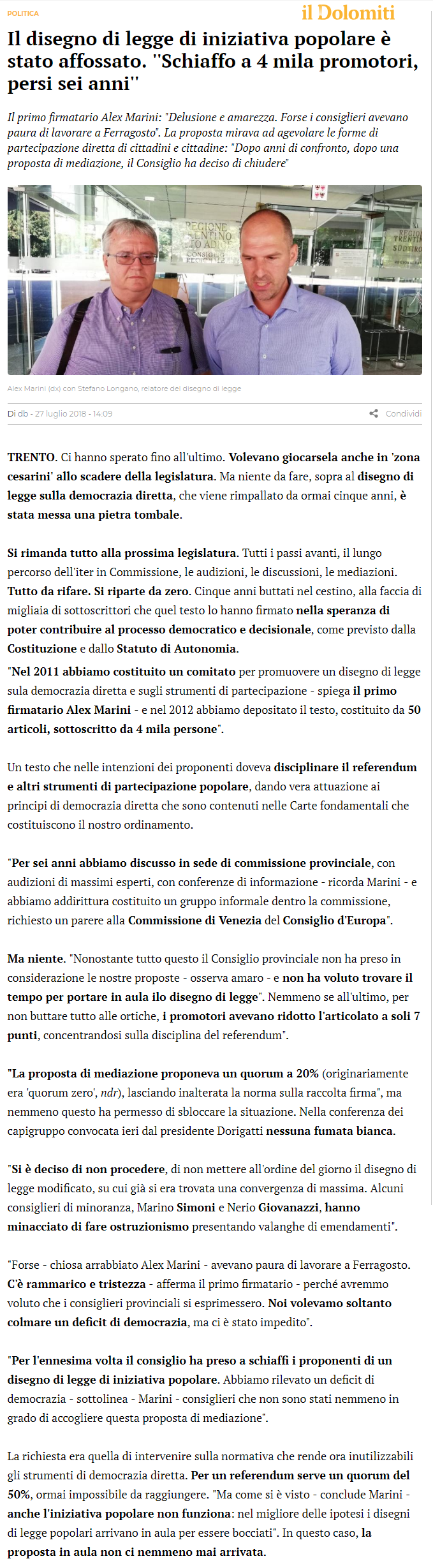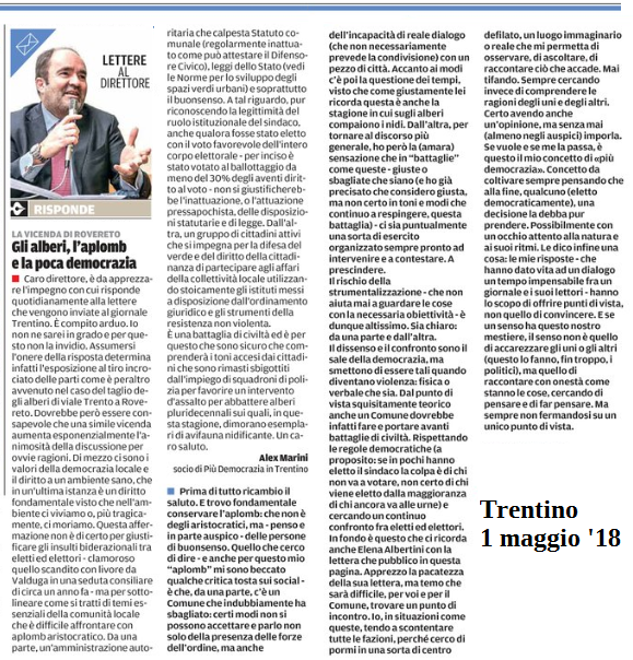 lettera di Alex Marini, Trentino
