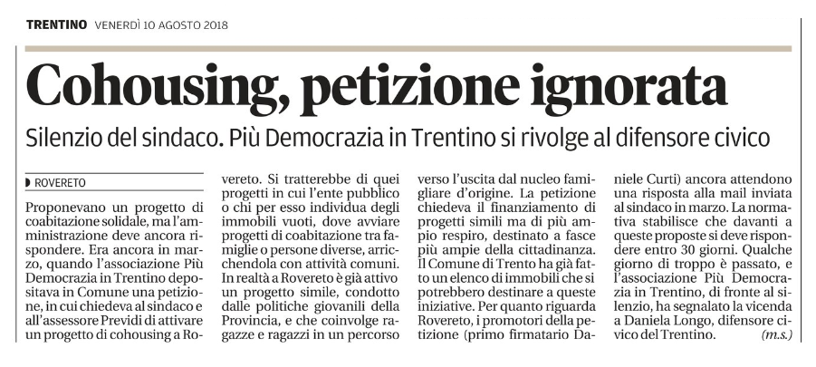 COHOUSING ROVERETO DA DIFENSORE CIVICO