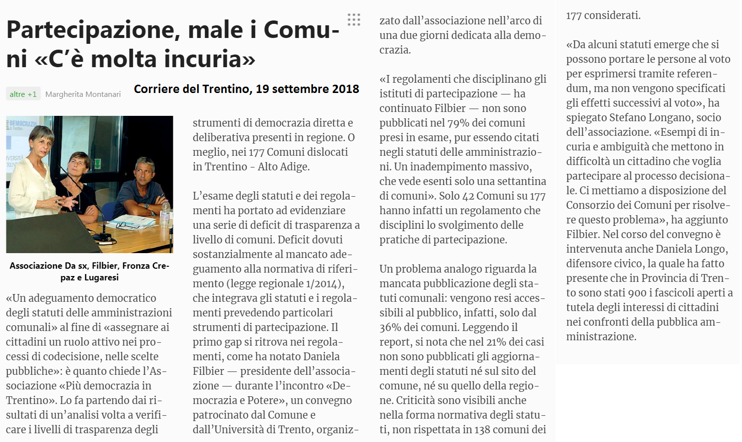 di Fabio Peterlongo, Trentino (relazione Difensore Civico)