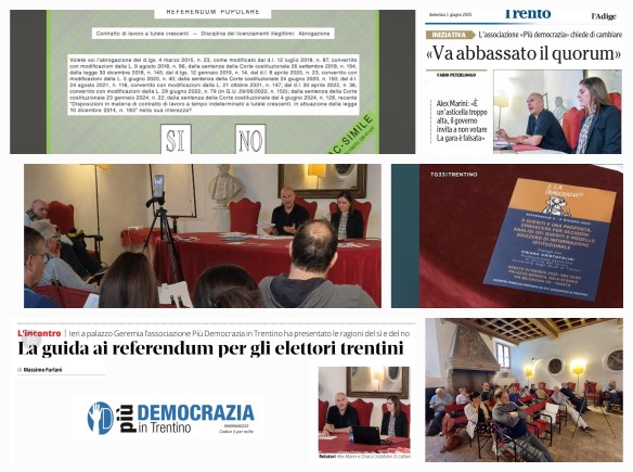 In attesa dell’incontro di presentazione al pubblico programmato per giovedì 23 ottobre a Borgo Valsugana, lunedì 20 ottobre, a Trento, si è svolta la conferenza stampa di presentazione della memoria amicus curiae depositata da Più Democrazia in Trentino nel giudizio di legittimità costituzionale promosso dal Governo contro la legge provinciale che elimina il limite dei due mandati consecutivi per il Presidente della Provincia.